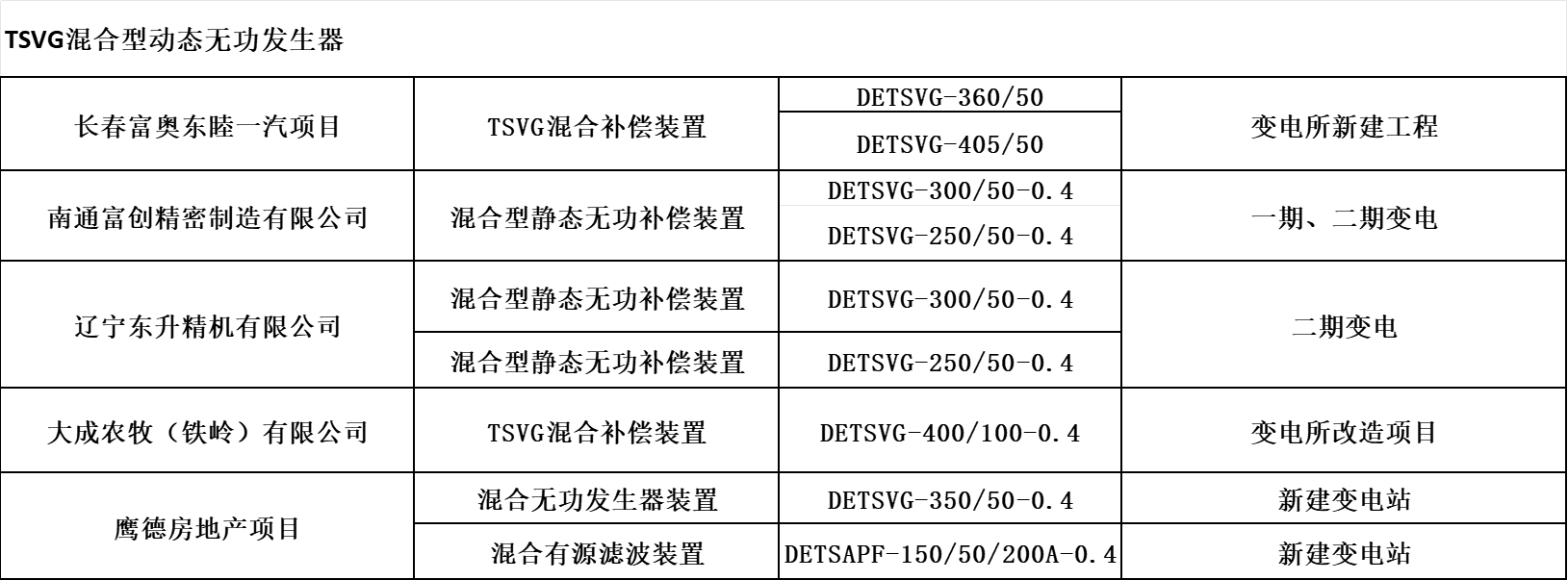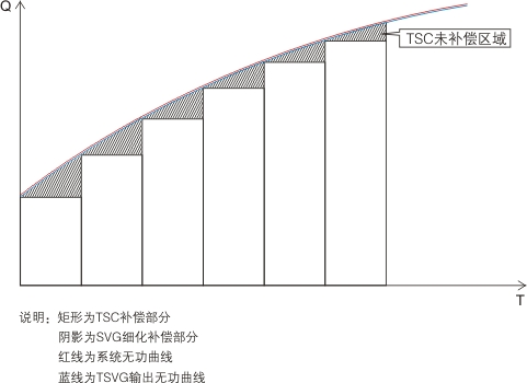 傳統(tǒng)補償裝置采用電容器提供無功功率,電容器組分組容量是固定的,輸出容量有階差,很難達到與系統(tǒng)無功安全平衡,而大容量的SVG成本很高,故我們公司經(jīng)過多年的實踐和摸索,研發(fā)出了TSVG,采用小容量的SVG大容量的TSC相結合,即節(jié)省了成本又達到了SVG響應速度快、無級性補償?shù)男Ч?,無功容量保證連續(xù)調(diào)節(jié)與平滑輸出。